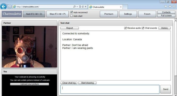 For those of you who have never ‘Spun’, I can only really summarise Chat Roulette as a stomach-churning, fun-filled laugh-fest. Full of ‘stranger danger’, it can be a bit of a lottery really in terms of what or who you’ll stumble upon. You are free to join in on the fun and the banter with one-on-one conversations (or group chats depending on how many people are behind each webcam) without any form of registration and it’s all completely free. The website randomly links you up for a conversation with anyone anywhere in the world and you have no say over who you get. Cue the freak show.