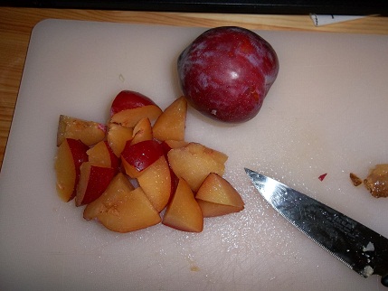 Slice up the plums; ensure you remove all of the stones and keep only the flesh. It's not required to peel them.